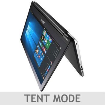 Multimode Versatility. Easily change between four modes - Laptop, Stand, Tablet, and Tent - for whatever you choose to do. This device's unique design and touchscreen display allow the screen to flip 360 degrees, so you can select the mode that best matches your needs at the time.