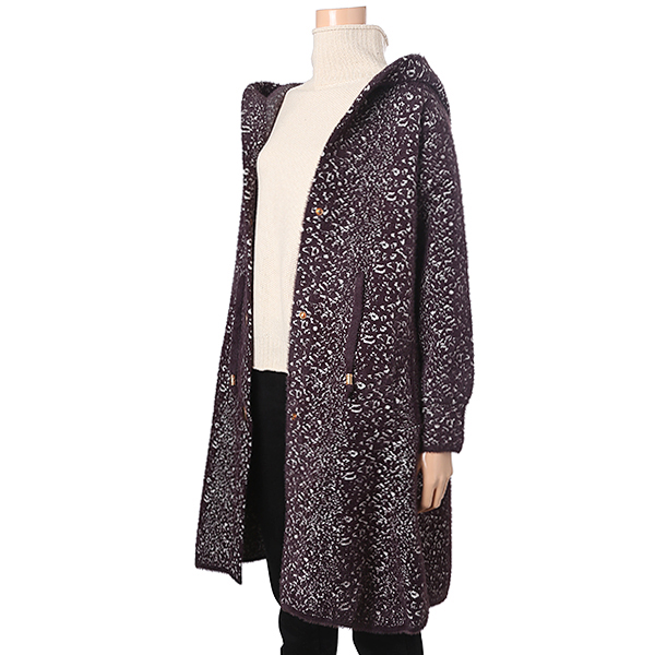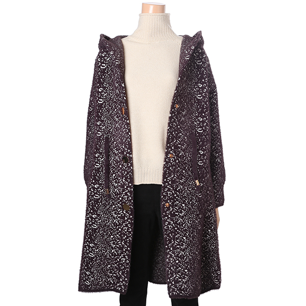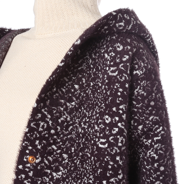 레오파드 패턴이 가미된 후드 니트 코트 입니다