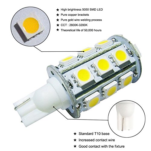 GRV T10 921 194 24-5050 SMD LED Bulb lamp Super Bright Warm White DC 12V Pack of 6