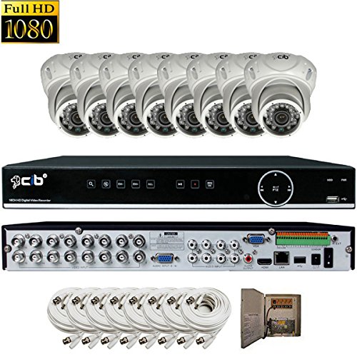 CIB Security H80P16K2T03W-8KIT-W 16CH 1080P Video Security DVR, 2TB HDD & 8x2.1-MP 1920TVL Night Vision Camera, White