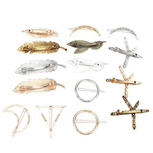 Jaciya 15pcs Minimalist Dainty Hair Clips Hollow Geometric Alloy Hairpin Clamps,Starfish, Leaf, Circle, Triangle and Moon Multiple Style