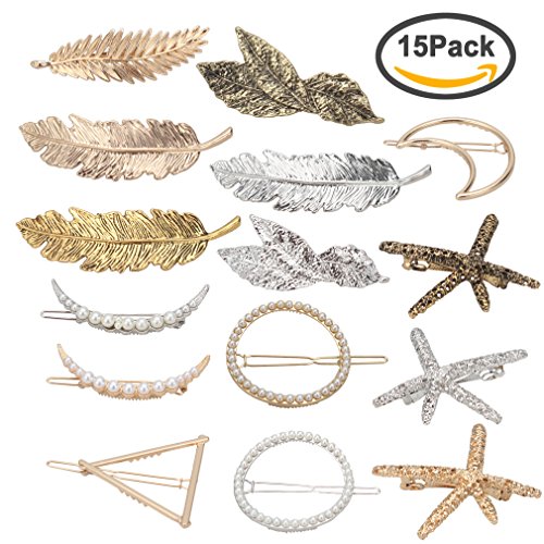 - This set of hair clips has 15 various pattern. Such as Starfish, Leaf, Circle, Triangle, Moon and so on.