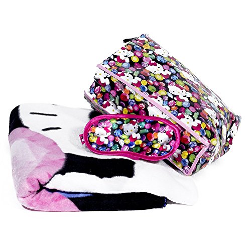 Hello Kitty Jewel Tote Bag, Throw Fleece Blanket and Eye Mask 3 pc Set