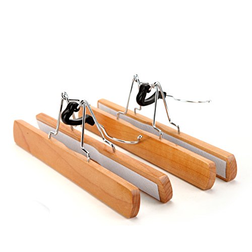 -. Title : TMAX Solid Wooden Collection Slack Hanger, Skirt Hangers, Natural Polished, 8 Pack