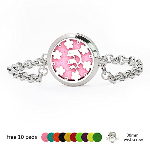 Silver Essential Oil Diffuser Bracelet - YouMiYa Dolphin Style Aromatherapy Essential Oil Diffuser Locket Twisted Bracelet Adjustable Chain Perfume Bracelet For...