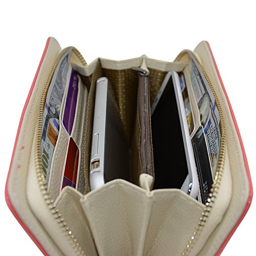 - Feature : Dimension: 8.3 x 4.2 x 1.0 inches (L x W x H) / Compatibility: Suitable for Apple iPhone 6 (4.7) iPhone 6 Plus (5.5) 5/5S/5C, Samsung Galaxy S6 S5 S4 S3 Note 4 3 2, HTC and all other cellphone, money, ID card, credit card, keys, and other small stuffs / It is made of premium PU leather which is durable and pretty. It is designed by bright stone texture. / This super convenient bag can be used as a handbag, clutch bag, purse wallet, wrist bag, Wrist strap design makes clutch into an essential and easy to carry, removable wrist strap is 6". / Great zipper bag, it is precise and multi-function designed with 3 separate pouches, 10 card slots .Best organizer for women.