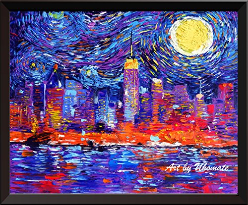 This is a digital reproduction of original oil painting of Van Gogh Starry Night inspired New York City Skyline wall art, which was designed and created by our artists from Uhomate