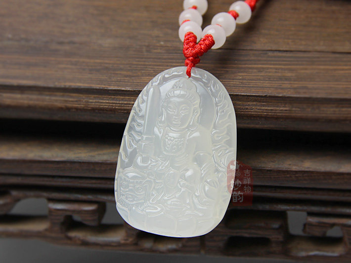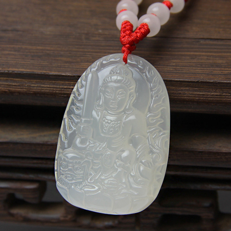开光白玉髓文殊菩萨吊坠挂件生肖属兔守护神本命佛男女款玉坠