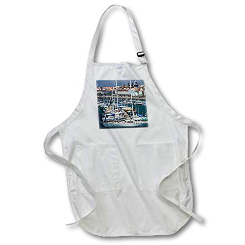 3dRose apr_205887_2 Boats in The Harbor of Ponta Delgada Sao Miguel Azores Portugal Medium Length Apron with Pouch Pockets, 22" x 24"