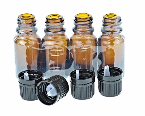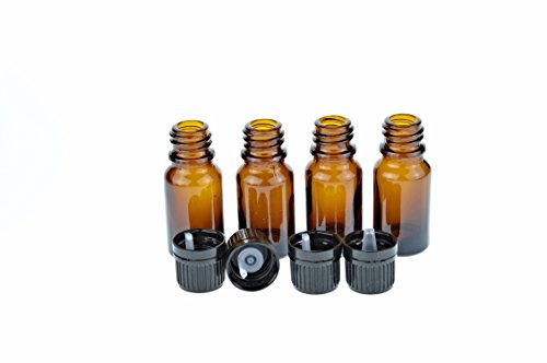 10 Ml Amber Glass Bottle W/euro Dropper with Black Cap, 4 Pack