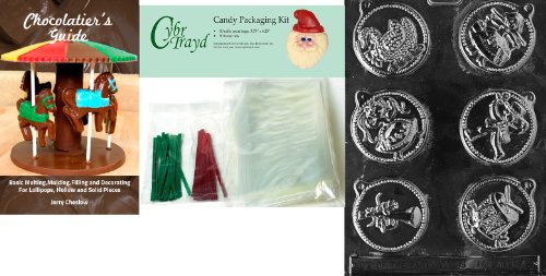 Cybrtrayd 12 Days of Christmas, 7 to 12 Chocolate Mold with Chocolatier's Bundle of 50 Cello Bags, 25 Green and 25 Red Twist Ties and Chocolatier's Guide