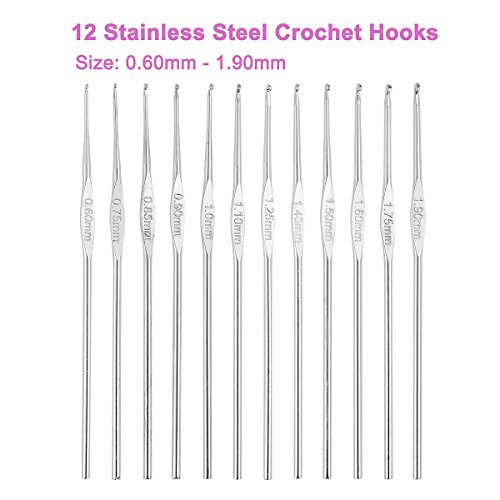 - Small Sizes Crochet Hooks made of Stainless Steel, 12 pieces - Crocheting the Finest crochet thread lace projects! (0.6mm, 0.75mm, 0.85mm, 0.90mm, 1.0mm, 1.1mm, 1.25mm, 1.40mm, 1.50mm, 1.60mm, 1.75mm, 1.90mm)