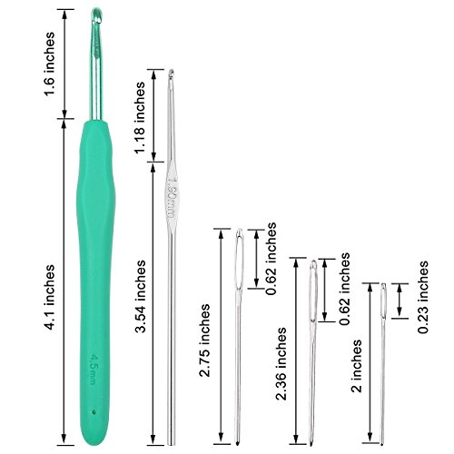 - Package: Crochet Hooks, Large-eye Blunt Needles, Mark pins, Tape Measure, Scissors, Original Premium Storage Bag