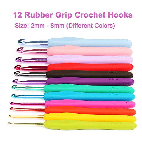 - Ergonomic Crochet Hooks with Soft rubber handles, 12 pieces - Crochet all day without pain! (B/ 2.0mm, C/ 2.5mm, D/ 3.0mm, E/ 3.5mm, G/ 4.0mm, 7/ 4.5mm, H/ 5.0mm, I/ 5.5mm, J/ 6.0mm, 10.5/ 6.5mm, 7.0mm, 11/ 8.0mm)