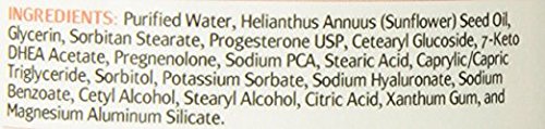 Each full press of the pump provides approximately 20 mg of natural Progesterone USP, 15 mg of Pregnenolone, and 15 mg of 7-Keto DHEA Acetate. This cream is formulated to contain 480 mg of Progesterone, 360 mg of Pregnenolone, and 360 mg of 7-Keto DHEA Acetate per ounce.Feature