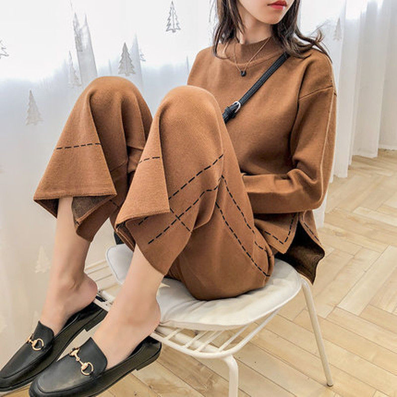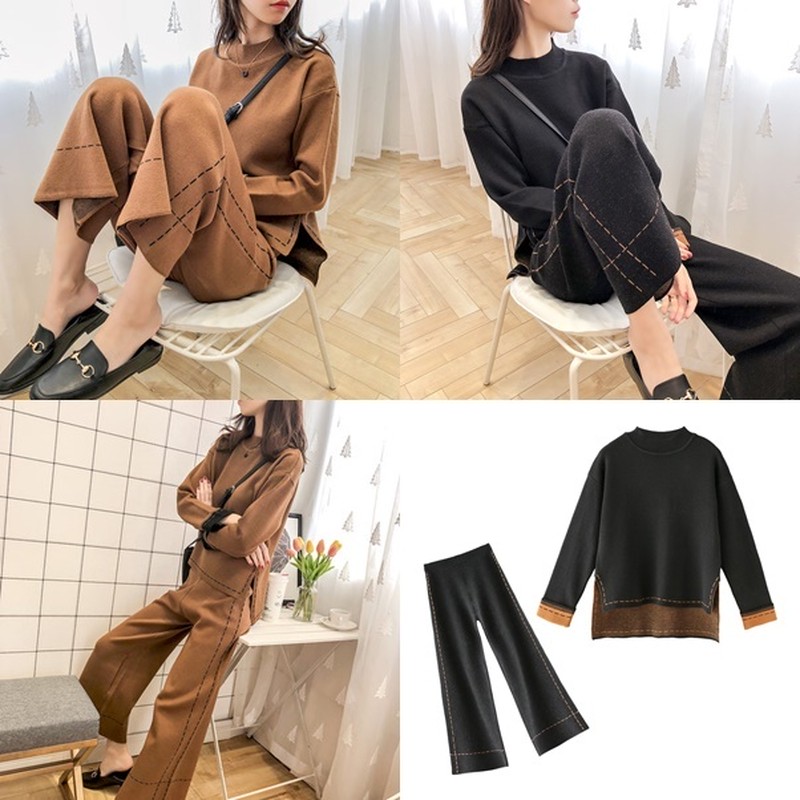 | 清楚で気品のある、ラウンドネックニットセーター×ニットワイドパンツの オシャレなステッチ入りセットアップ♬ セットアップスタイルで、オシャレに着こなし★ 上下別々でも着回ししやすいアイテムです♪ 普段遣いや、通勤・通学スタイル、女子会、デートなどにオススメです♡ *サイズ(cm)* ワンサイズ トップス 着丈51-59肩幅48バスト94袖丈43 ボトムス ズボン丈85ウエスト58 *カラー* ブラウン ブラック *素材* ポリエステル ビスコース ナイロン 【商品について】