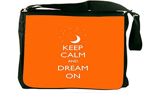 Studio : Rikki Knight LLC Publisher : Rikki Knight LLC Binding : Office Product Product Description Whether from home to the office, on a business trip or to school, the keep Calm and Dream on - Orange color laptop bag notebook bag messenger bag school bag keeps you comfortable and your cargo safe and sound - this bag features pockets on the outside below the flap for your cellphone, pens, iPod, notebook etc. And also a zippered compartment on the inside, with plenty of space to store your textbooks, folders, files, etc. And up to a 14 inch laptop (laptop sleeve sold separately) - the vibrant image on the front is professionally printed and will not fade or peel with time and this bag will surely be an eye catcher wherever you go with it. Disclaimer: all images are printed directly into the material - the Texture of the image will always be a flat surface. Any images that appears to be 3D, textured, or glittery are flat printed images. 0