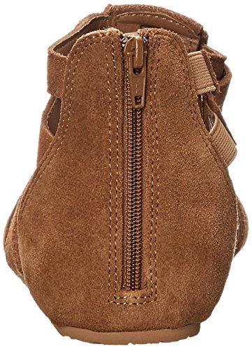 - Feature : Suede T-strapped sandal with fringe / Back zipper closure with buckle detail at ankle strap / Synthetic leather lining and footbed / Durable ethylene vinyl acetate outsole