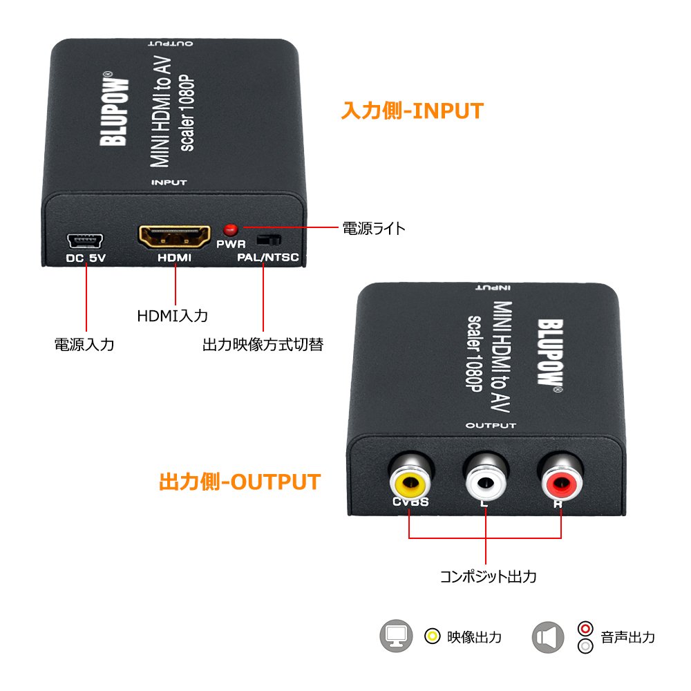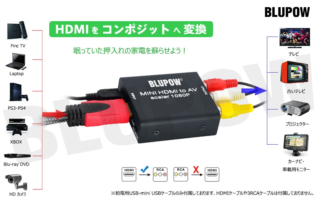 If you have a BLUPOW HDMI to RCA conversion adapter, you can enjoy video and audio from devices compatible with HDMI output, such as smartphones and game machines, even with a cathode-ray tube TV with only a composite (RCA) terminal.