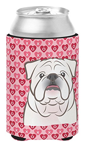 Caroline's Treasures White English Bulldog Hearts Can or Bottle Hugger, Multicolor