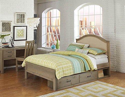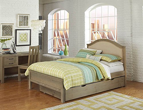 Studio : NE Kids Publisher : NE Kids Product Description Hand crafted. Low profile footboard creates a welcoming, more open feel in the room. Advanced center support system is uniquely designed to support a full size mattress. Slat roll foundation makes this bed mattress ready by taking the place of a conventional foundation. Internal bracket and bolt system provides strong connection where the bed rails attach to both the headboard and the footboard without exposing unsightly bolt heads. Optional trundle is finished on all four sides to ensure a finished look from all angles. Wooden slat system provides support for the mattress. Trundle face is shaped on the top edge to provide convenient hand holds when accessing the sleeping surface. Metal on metal barrel bolt construction adds strength and stability to the trundle. Four durable in-line wheels allow the trundle to glide easily in and out from under the bed. Optional storage unit with 6.5 in. deep two large storage drawers and an extra large cubby. European drawer interior: drawer sides and back are as tall as the drawer face. Four piece drawer boxes with English dovetail joinery at the front and back of the drawer. Full extension, side-mounted, ball bearing drawer guides. Outfitted with 5 in. solid iron oil rubbed bronze drawer pulls with matte finish. Made from solid pine. DURA-brush enhanced driftwood finish. Assembly required. Optional trundle: 75.38 in. W x 40.38 in. D x 10.25 in. H. Optional storage unit: 75.5 in. W x 15.25 in. D x 10.75 in. H. Bed: 80.25 in. L x 57.5 in. W x 48 in. H. The understated elegance of the Bailey Upholstered Bed combines simple curves and a soft upholstered panel with rustic wood framing creating the ultimate cozy retreat for an all American girl. 0
