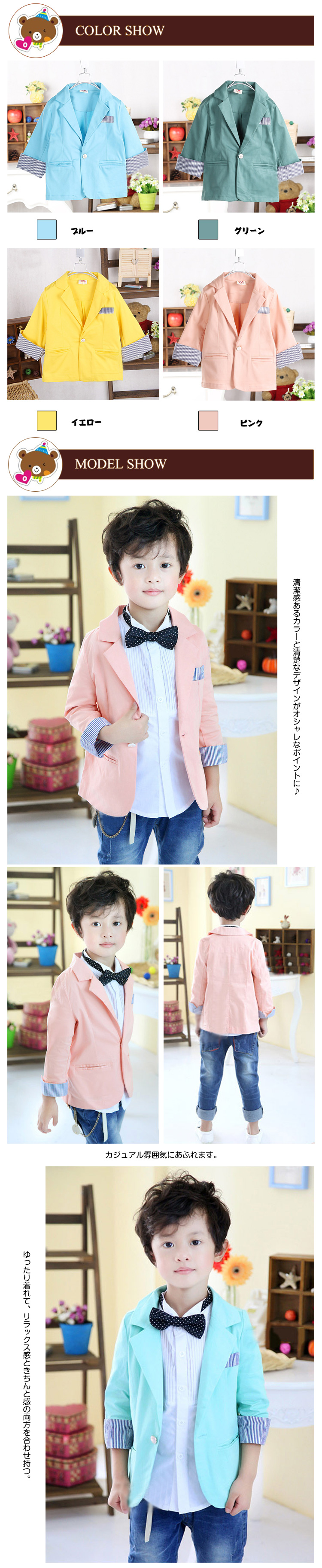 100? 着丈41 バスト62 袖丈33 肩幅25110? 着丈44 バスト66 袖丈35 肩幅27120? 着丈47 バスト68 袖丈37 肩幅29130? 着丈50 バスト72 袖丈40 肩幅30140? 着丈53 バスト76 袖丈43 肩幅31150? 着丈56 バスト78 袖丈44 肩幅33※上記サイズは平置き実寸になります。サイズ表の実寸法は商品によって2-4cm程度の誤差がある場合がございます。