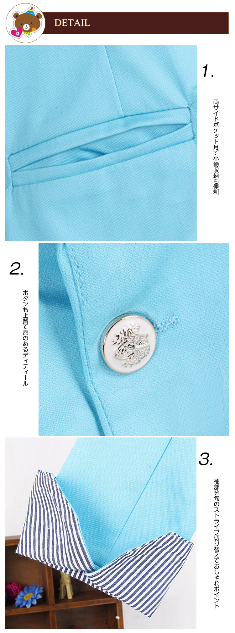 | キレイめからカジュアルまで幅広くコーデに使えるテーラードジャケットの登場です。清潔感あるカラーと清楚なデザインがオシャレなポイントに?ゆったり着れて、リラックス感ときちんと感の両方を合わせ持つ。カジュアル雰囲気にあふれます。ストライプ柄の切り替えとの相性が絶妙!個性感もファッション感もタップリ?いつもの服とは一味違った感覚が楽しめます!ギフトとしても喜ばれること間違いなし。 | |