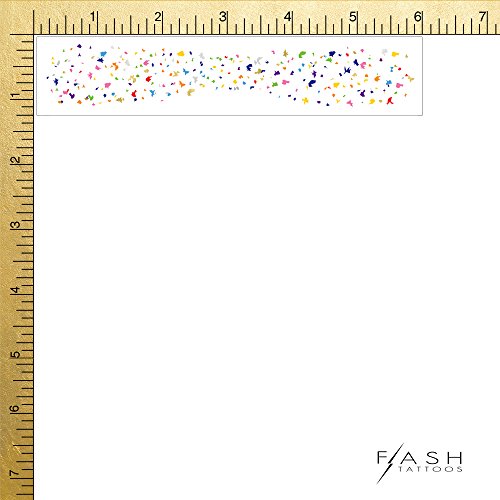 Set includes 25 individual RAINBOW CONFETTI FRECKLES Flash Tattoos in metallic rainbow colors. Single tattoo size: 6” x 1.25”