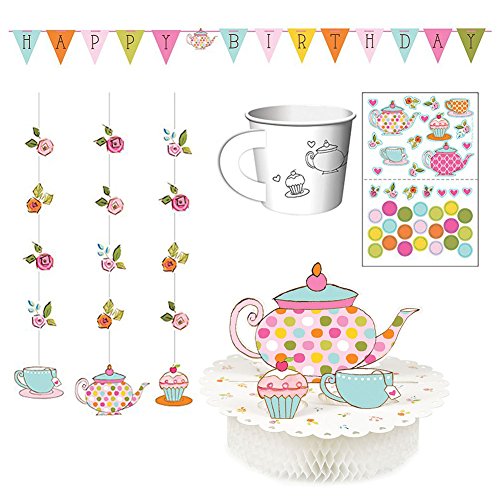 -. Title : Tea Time Party Decorations Supply Pack - Hanging Cutouts, Banner, and Centerpiece