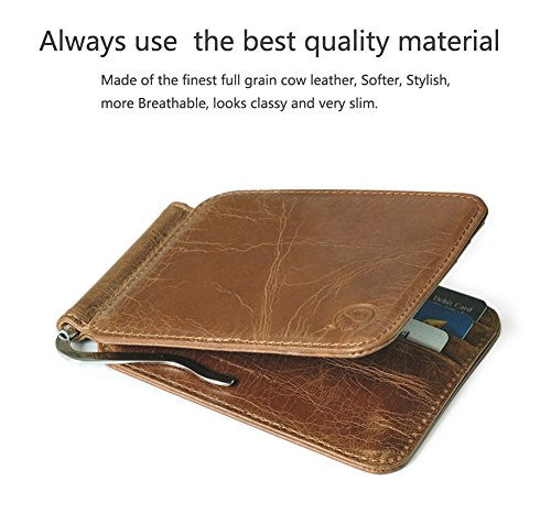 -. Feature : ❤ What's in the box - 1 Men's Leather Money Clip; Product Dimensions: 5.6" * 3.5"* 0.4". / ❤ Always use the best Quality Material - Made of the finest full grain cow leather, Softer, Stylish, more Breathable, looks classy and very slim. / ❤ Streamlined Design - No more bulky wallets. This streamlined money clip fits comfortably in your front or back pocket and includes two outside card sleeves that hold up to six cards each, along with a unique sP.R.Ing-clip inside to hold cash. / ❤ Suitable for any Occasion - This versatile and stylish wallet is a great present for a birthday, anniversary, valentine's day, Father's Day, Christmas, New Year or another significant event. / ❤ After-sales Service - Quality problems occur within one year replacement, lifetime warranty, if you're not completely satisfied, then CONTACT US and we will give you a 100% refund within 90 days of purchase. It is our intention to offer the BEST customer service on Amazon.