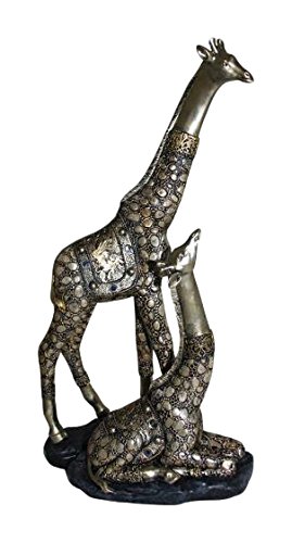 Entrada EN13179 Double Giraffe On Stand Polyresin Figurine, 16.75" x 9" x 5", Silver