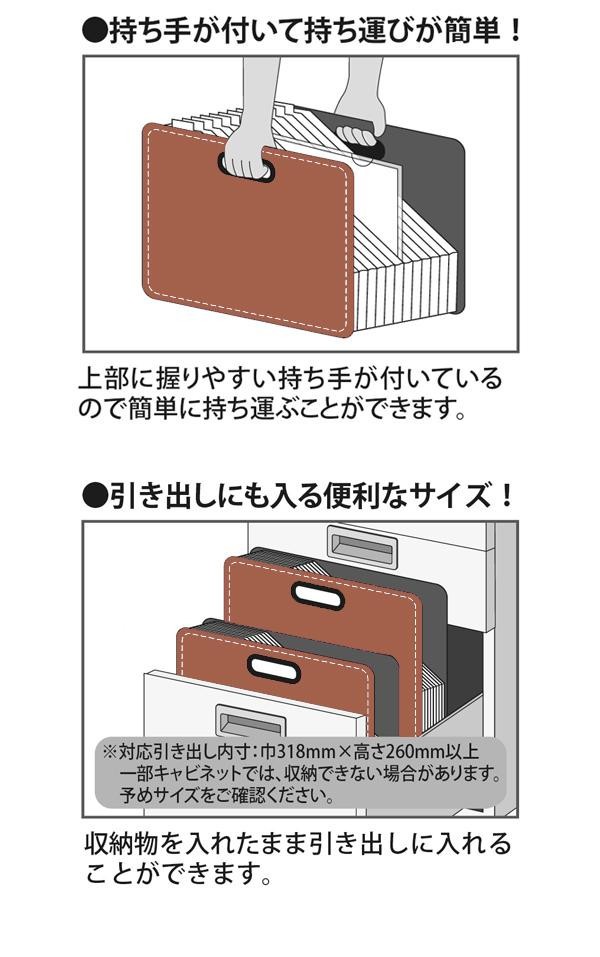 | 持ち運びに便利な自立するドキュメントファイルです。 |