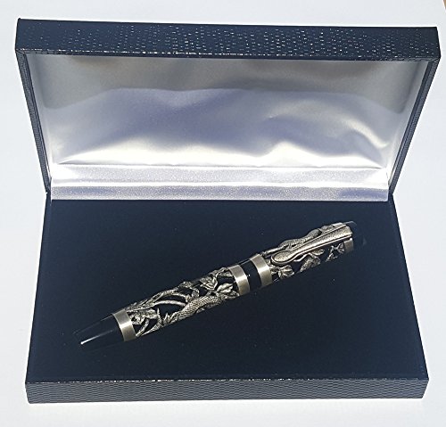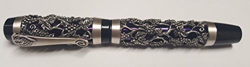 -. Feature : Grape Design Fountain Pen with Box (Black/Silver) / Grape Series / Black & Antique Silver Barrel / High quality Fountain Pen / Elegant design