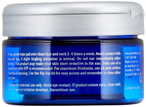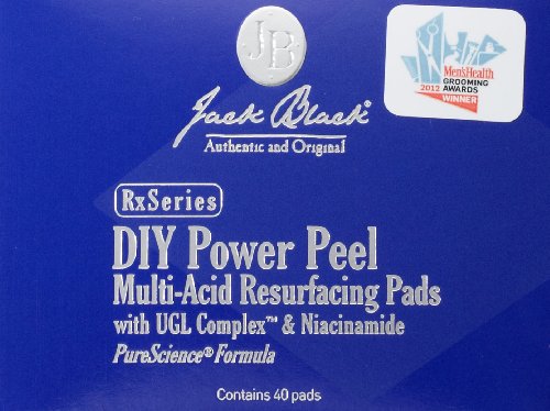 -. Binding : Health and Beauty -. Brand : Jack Black -. Color : no color -. Department : Men -. EAN : 0763615681476 -. Feature : UGL Complex, a clinically tested complex of Glucosamine HCI, Algae Extract, Yeast Extract and Urea, is shown to, with regular use, improve smoothness by 45%, diminish wrinkles by 33% and increase integral firmness by 55% / Natural Fruit Acids, Bilberry, Sugar Cane, Orange, Sugar Maple and Lemon provide glycolic, citric, malic and lactic acids that exfoliate skin to help erase environmental damage / Glycolic Acid helps reduce fine lines and wrinkles and lighten dark spots / Birch Bark Extract helps naturally improve skin elasticity, tone and clarity / PerfectionPeptide P3 helps brighten skin for an even-looking complexion -. IsAdultProduct : 0 -. Label : Jack Black -. Manufacturer : Jack Black -. Model : 2017 -. MPN : 2017 -. NumberOfItems : 1 -. PackageQuantity : 1 -. PartNumber : 2017 -. ProductGroup : Prestige Beauty -. ProductTypeName : LUXURY_BEAUTY -. Publisher : Jack Black -. ReleaseDate : 2012-08-28 -. Size : 40 pads -. Studio : Jack Black -. Title : Jack Black DIY Power Peel Multi-Acid Resurfacing Pads, 40 Count -. UPC : 682223020173