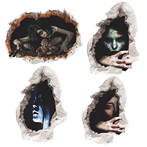 -. Feature : Set your imagination free and decor your wall in your own way / 3D wall sticker size: 19.7" * 27.6",set of 4 / Let your friends to enjoy the atmosphere of Halloween wall sticker / Suit for any clean tile, glass, doors and windows, bedside, room, mirror, firewall, furniture, electrical appliances, plastics, metal and compatible with any smooth surface