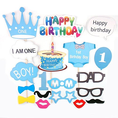 Losuya Baby Boy 1st Birthday Party Photo Booth Props Baby Shower Photobooth Props Blue Kit 25pcs Mustache Cake Happy Birthday Party Decor Favor