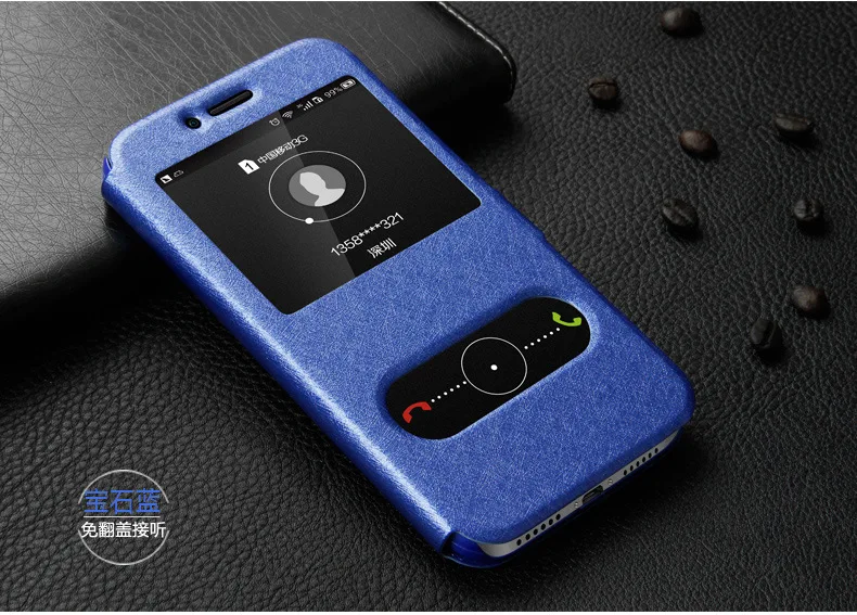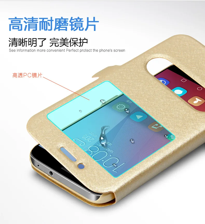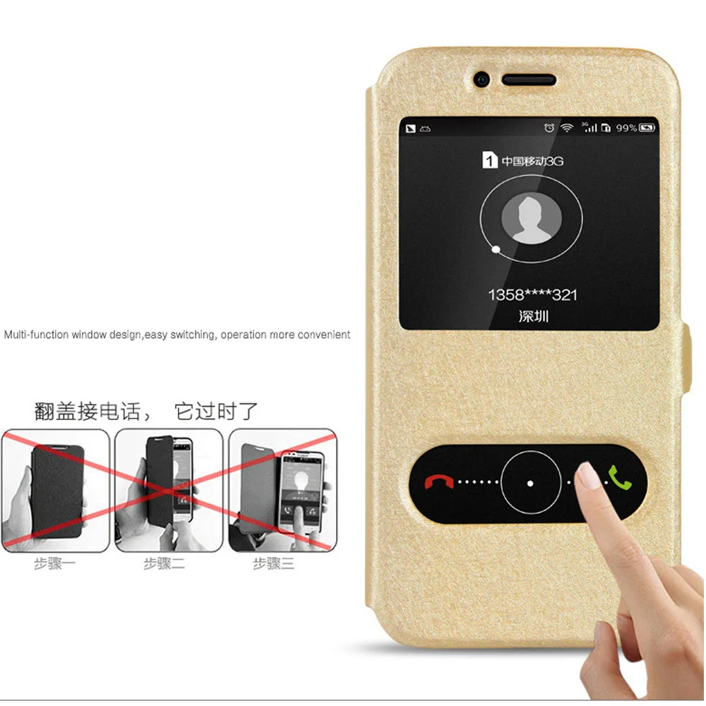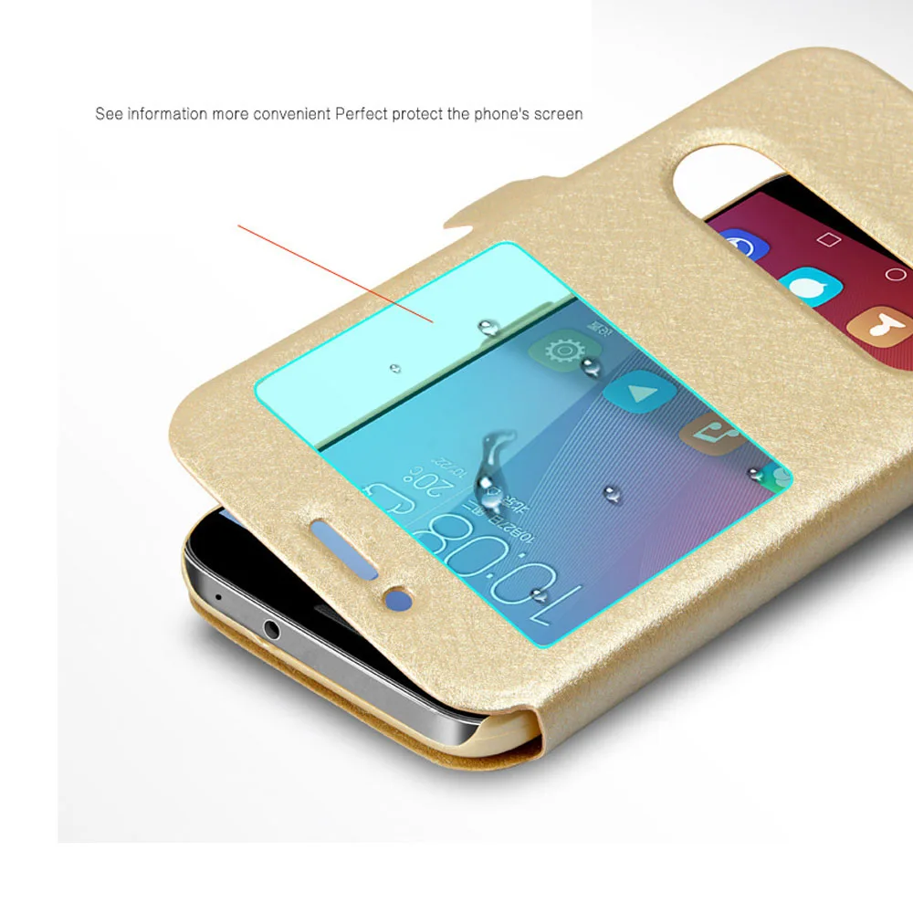 Features:quick view window leather case stand flip cover