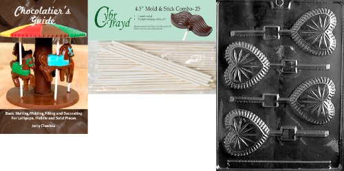 Cybrtrayd 'Crystal Heart Lolly' Valentine Chocolate Candy Mold with 25 4.5-Inch Lollipop Sticks and Chocolatier's Guide
