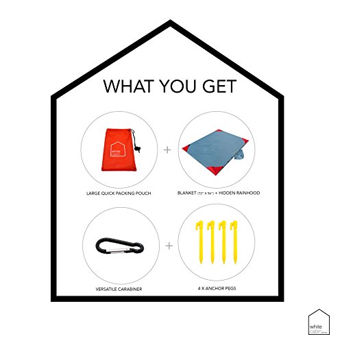 Studio : White Cabin AU Publisher : White Cabin AU Product Description The White Cabin outdoor pocket blanket is perfect to have on you at all times. Easily fitting in your purse, day bag or even hanging it off your clothes with the included carabiner clip. It is super light weight at only 4oz and very small when packed up at 5 x 4inchs. It is made from 210T Ripstop Nylon, which makes it strong to prevent ripping while at the same time we have chosen a smooth finish to make it comfortable to laze around on. We have made extra large corner pockets so it can fit all your things, even the large cell phones. You can secure the blanket by easily filling the large corner pockets with sand or use the included light weight pegs. It is waterproof so you can keep dry on wet ground, and when it rains pull out the hidden raincoat hood. The hood transforms the blanket into a poncho to keep you and your gear nice and dry. It is a large blanket when unpacked at 72" X 56", which easily fits two adults so you can enjoy the outdoors in comfort with friends . Pick up a White Cabin Pocket blanket now and enjoy the great outdoors! 0