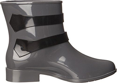 Glossy galoshes featuring two contrast straps with metallic buckles