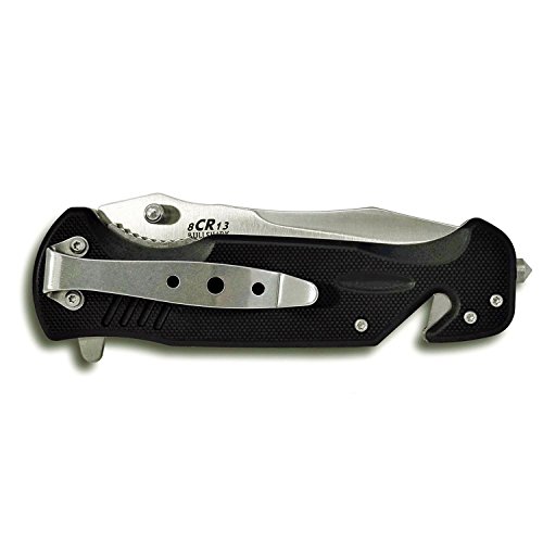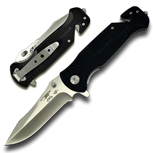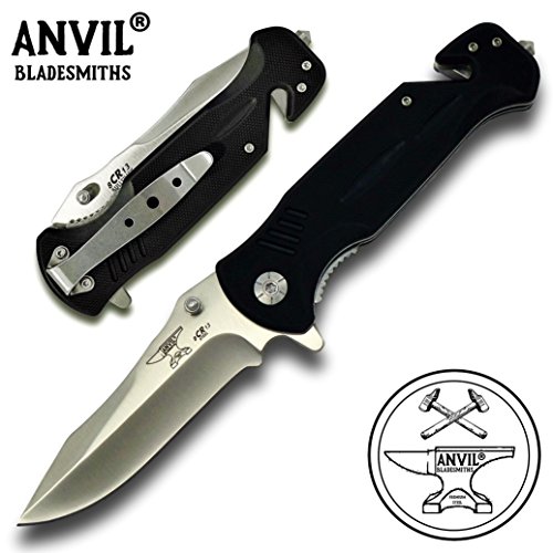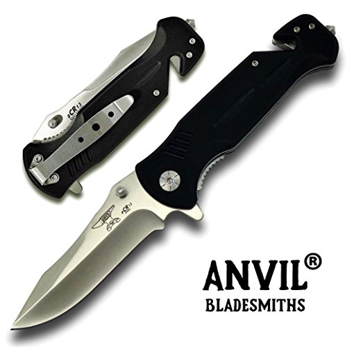 ANVIL BLADESMITHS - BULLSHARK G-10 8CR13 Folding Tactical Rescue Pocket Knife w/Glass Breaker and Seatbelt Paracord Cutter - Choice of SERRATED OR STRAIGHT Blade