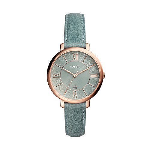 -. Title : Fossil Jacqueline Three-Hand Date Sage Green Leather Watch