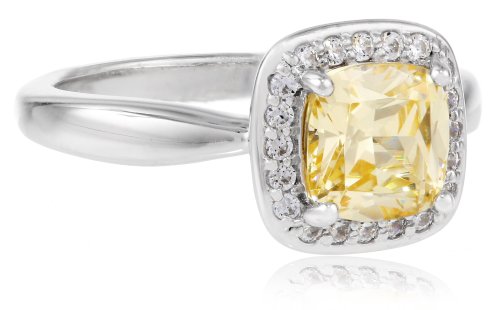 -. Title : Myia Passiello Cushion-Cut Canary Swarovski Zirconia Halo Ring