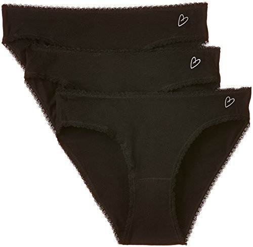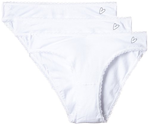 Herrlich anschmiegsamer Damen-Slip mit zarter Spitzenkante an den Abschlussen, die den Hoschen einen verspielten, sexy Touch verleiht - Wahlweise in Schwarz oder Weiss und im vorteilhaften 3er PackFeminine Panties mit herrlichem Tragekomfort und nicht allzu knapp geschnitten - Der Taillenslip ist suss und verfuhrerisch und dabei doch alltagstauglich und pflegeleicht - Dessous mit hubschem Herzchen-Logo versehen