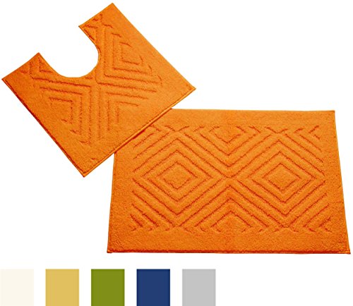 -. Feature : Set of 2 bath rugs / 100% tufted cotton / Geometric birds-eye design in choice of color / Pile height: 0.5 in. / Machine washable