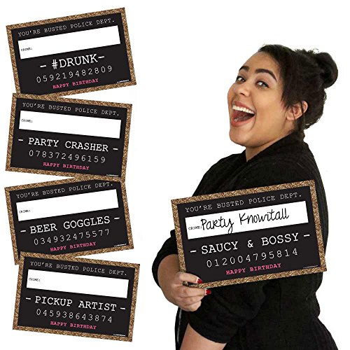 Chic Birthday Party Mug Shots - Black and Gold - Photo Booth Props Party Mug Shots - 20 Count