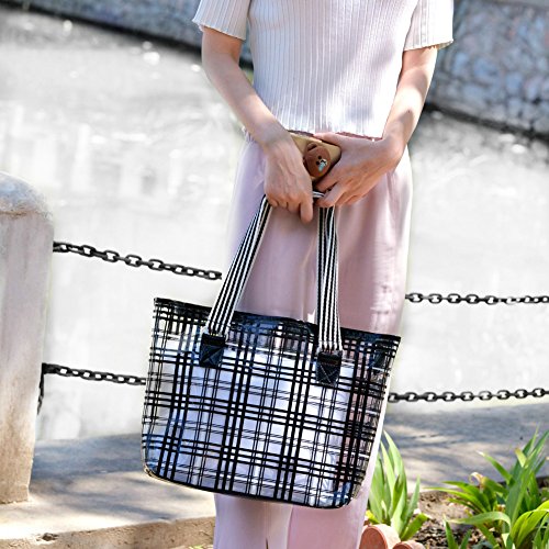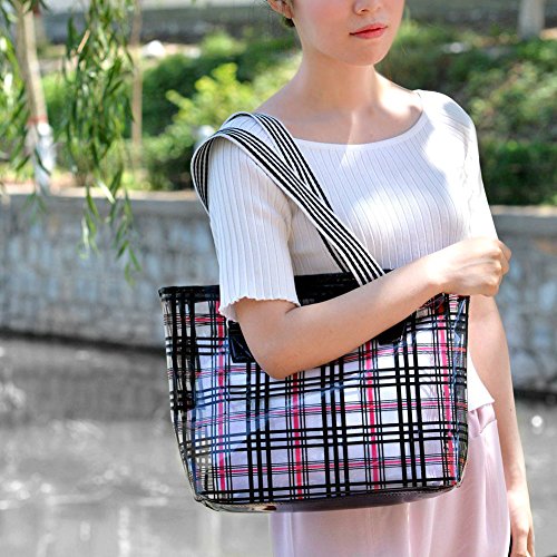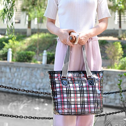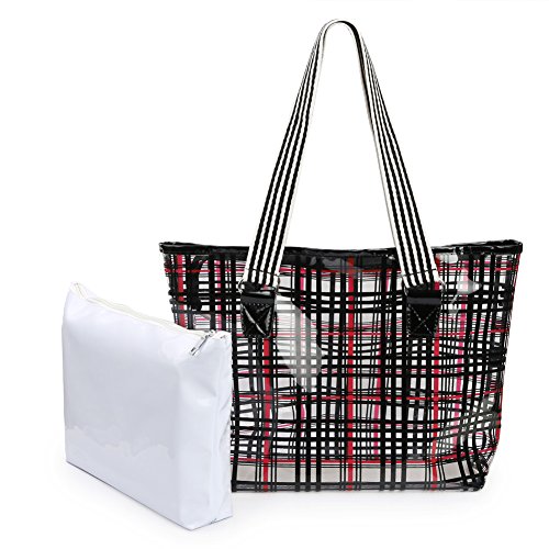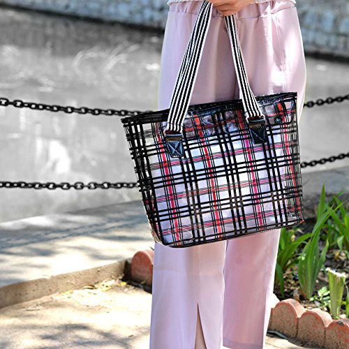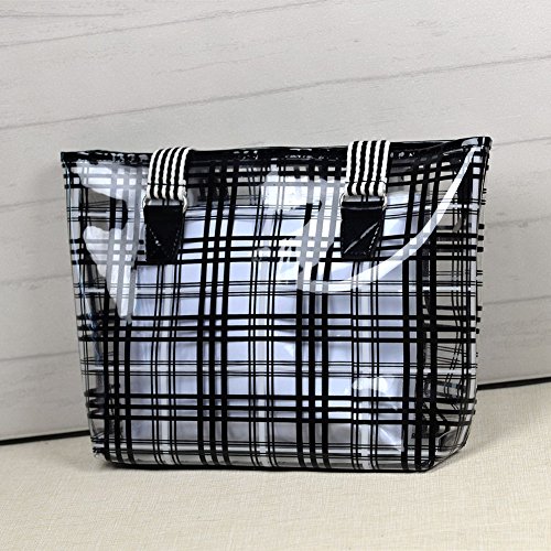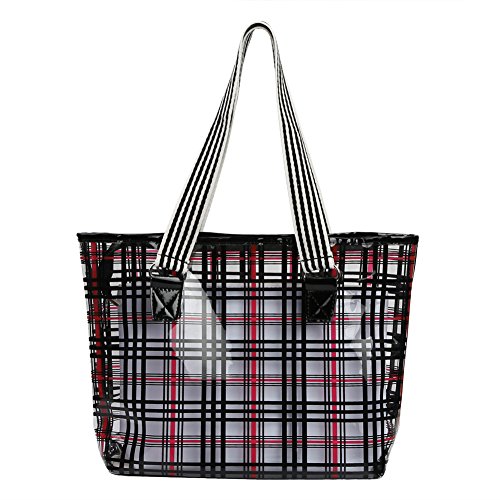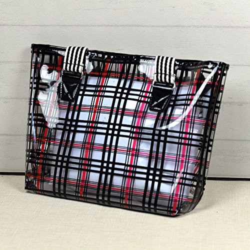 Features: #1 Horizontal square jelly bag, plenty of room for A4 magazines, apid, keys, snacks and cosmetics,perfect companion for outing,summer beach trip, etc. #2 Waterproof PVC and polyester material,together with semi-clear plaid pattern,fashionable and durable for use. #3 Zipper closure and internal small pouch design,you can place personal items for added security and privacy. #4 Purple,yellow, red, black, four colors optional,just select one to show your personality! Material: waterproof PVC polyester Open way: zipper Pattern: check pattern,semi-clear Internal structure: one zippered pocket Size: 31x 11 x 29 cm/ 12.2 "x 4.3" x 9.8 "(length x width x height) Note: Color may be slightly different becuase of different displays.Please read the size chart carefully. Please compare with your detailed size before order, and allow 2-4 cm error due to manual measurement. Package: 1x Handbag