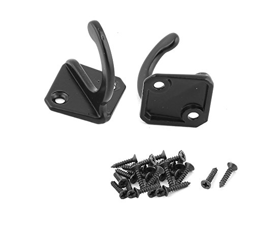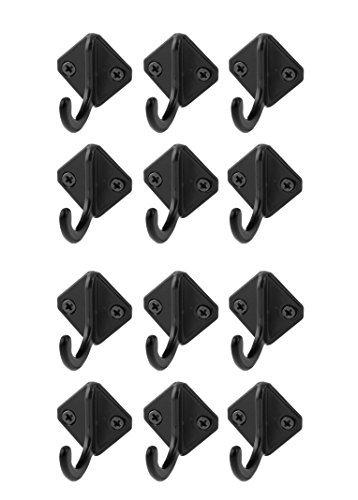 Antrader Metal Single Hanger Hooks Storage Hook Double Hole Black with Screws Pack of 12