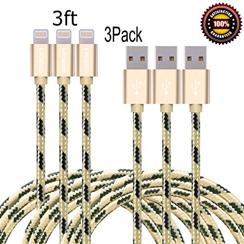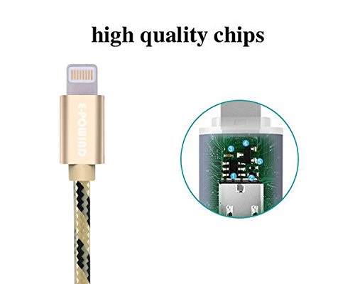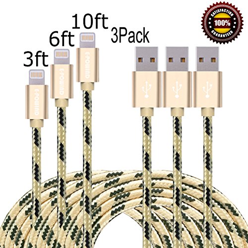 E-POWIND Nylon Braided 8Pin USB Lightning Charging Cable, 3-Pieces (3-Feet, 6-Feet, 9-Feet) - Gold / Black