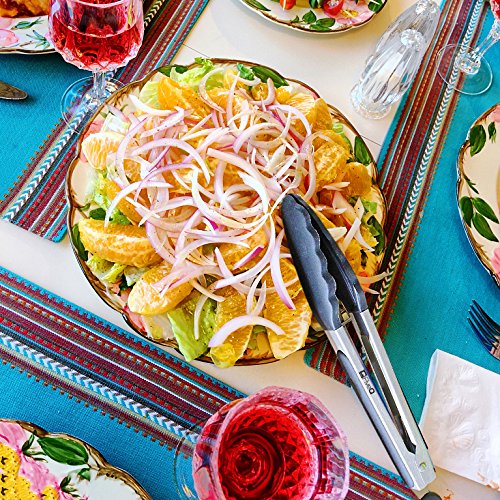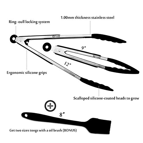 -. Feature : PREMIUM QUALITY - FIVEQ brand of Kitchen Tongs Set are ruggedly made of premium quality materials of stainless steel for durability. No Scratch, Non-stick friendly and with Silicone tip for heat resistant up to 4800 to prevent warping, melting, or rusting into your food. Our brand of best Kitchen Tong comes in a pack of 2 with generous Silicone Brush. / EASY TO MAINTAIN - The Kitchen Tongs Silicones are stain and odor resistant, with a perfect sliding lock for convenient hanging and storage, easy to clean and dishwashable safe. The Kitchen Tongs of FIVEQ comes in variant colors of black and red Silicone. / HEALTHY AND SAFE - Unlike cheap or junky plastic/nylon Tongs these brand of Silicone Kitchen Tongs are 100% FDA approved Silicone and BPA-Free, no melting, no warping, and no rusting or flaking like into foods / ERGONOMIC TO USE - This Kitchen Tongs small are made of ergonomic sizes of 9- inches and 12- inches with 1MM Stainless Steel construction from the Silicone handle to the Scalloped Steel tip to prevent hand burns or any heat related Kitchen Tongs hazards with soft Silicone handles for perfect grips. / TREMENDOUS GRIP SILICONE- The Kitchen Tongs Tips and Handles coated with Silicone offers a tremendous grip making them perfect kitchen Tongs for cooking and serving all kinds of foods such as pasta, Salad, BBQ among others.